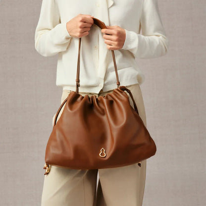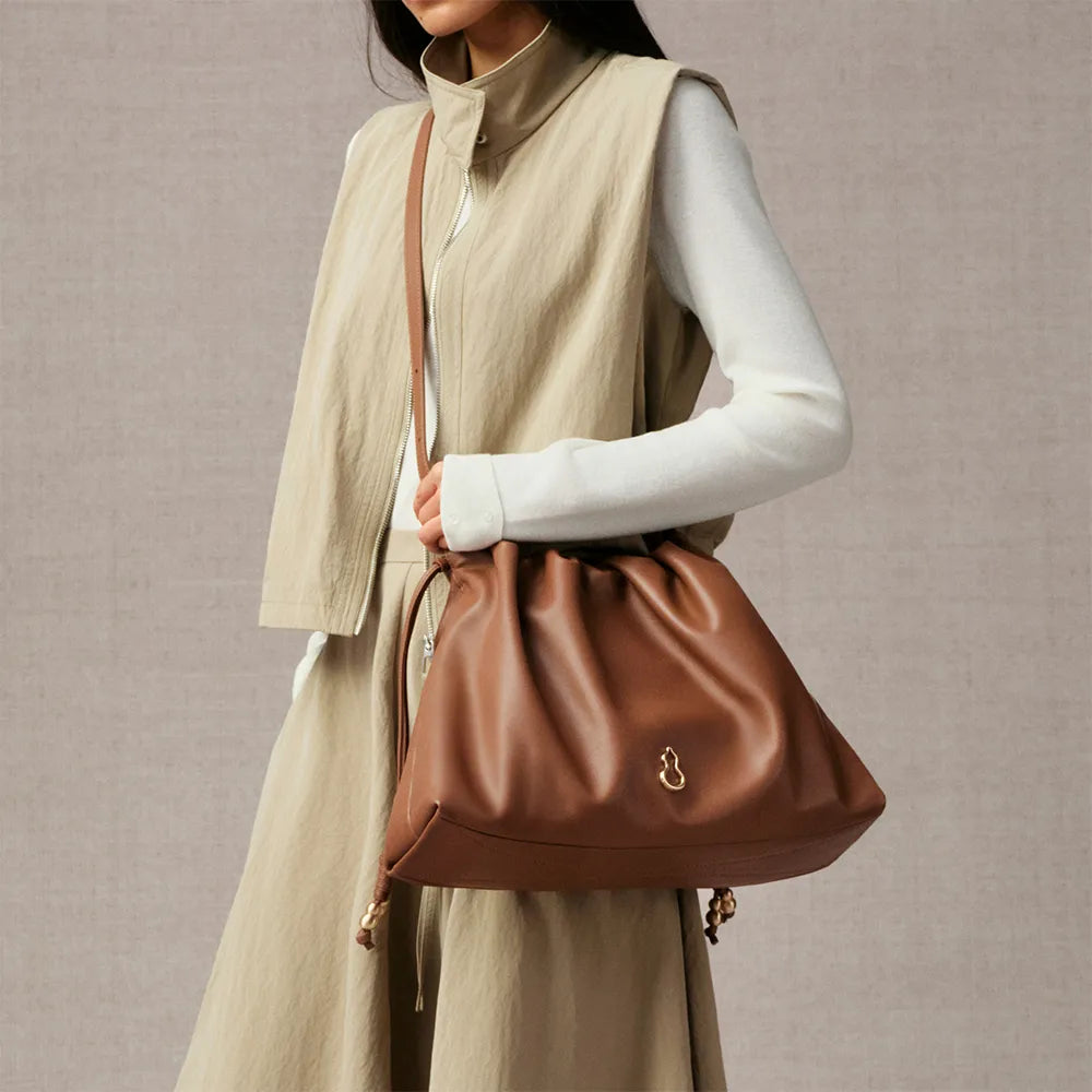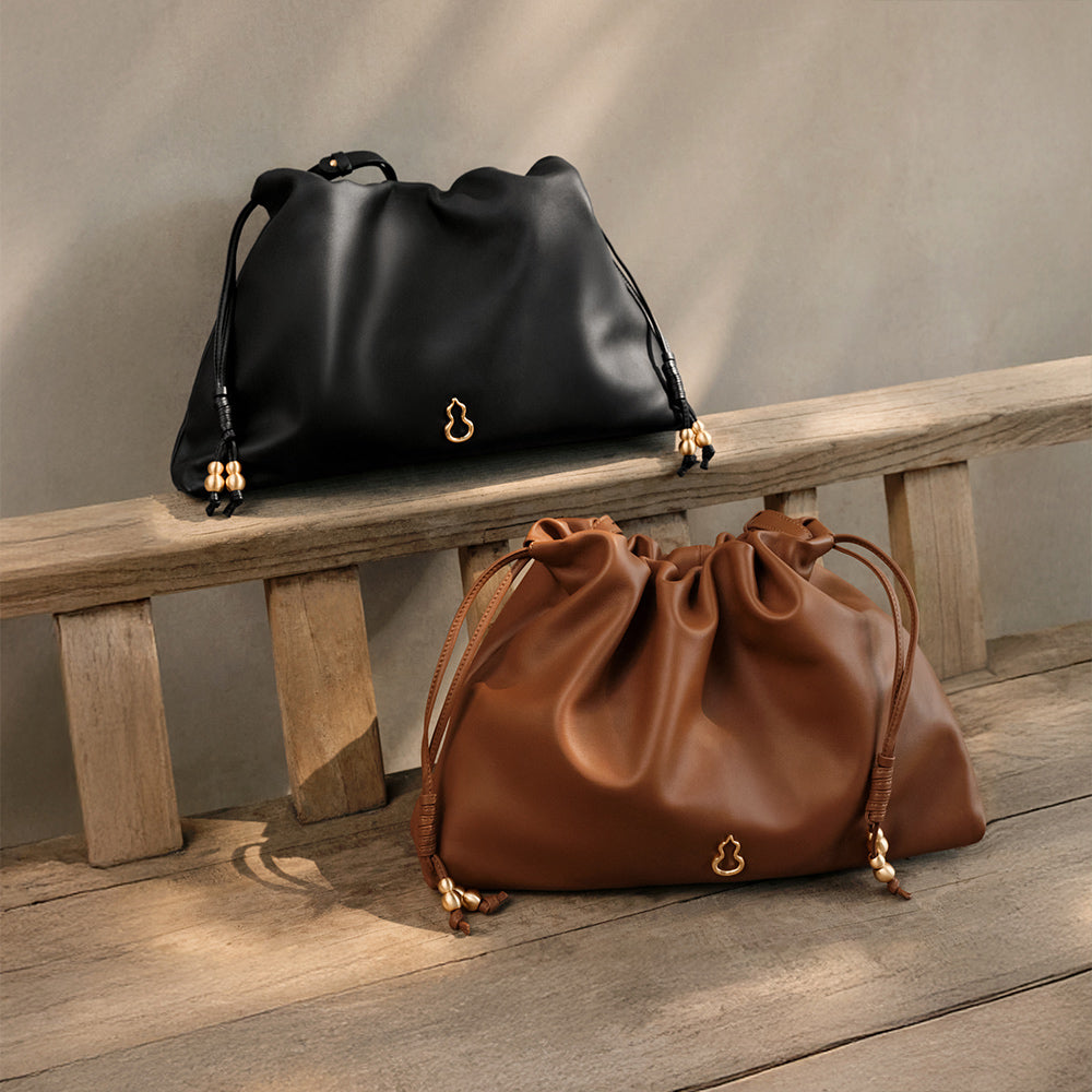 The drawstrings are finished with handwoven details and hollowed hulu (gourd)-shaped ornaments, adding cultural charm and symbolic meaning. In Eastern tradition, the gourd represents good luck. Combined with subtle craftsmanship, the Large Flow Cloud brings together function, softness, and quiet beauty.