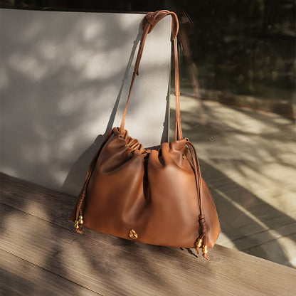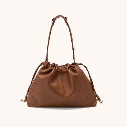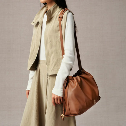 Made from full-grain Nappa calf leather, the bag is smooth, flexible, and folds naturally without losing its shape. A magnetic snap and drawstring closure add both structure and ease, while an adjustable shoulder strap allows for multiple ways to carry—crossbody, on the shoulder, or by hand. Inside, a detachable pouch offers extra organization and securely fits a 6.7-inch iPhone—perfect for keeping small essentials within easy reach.