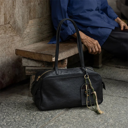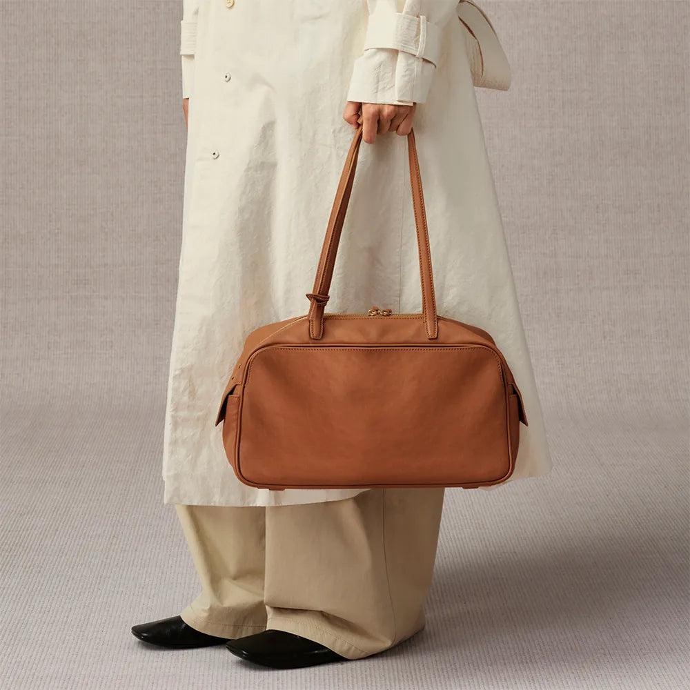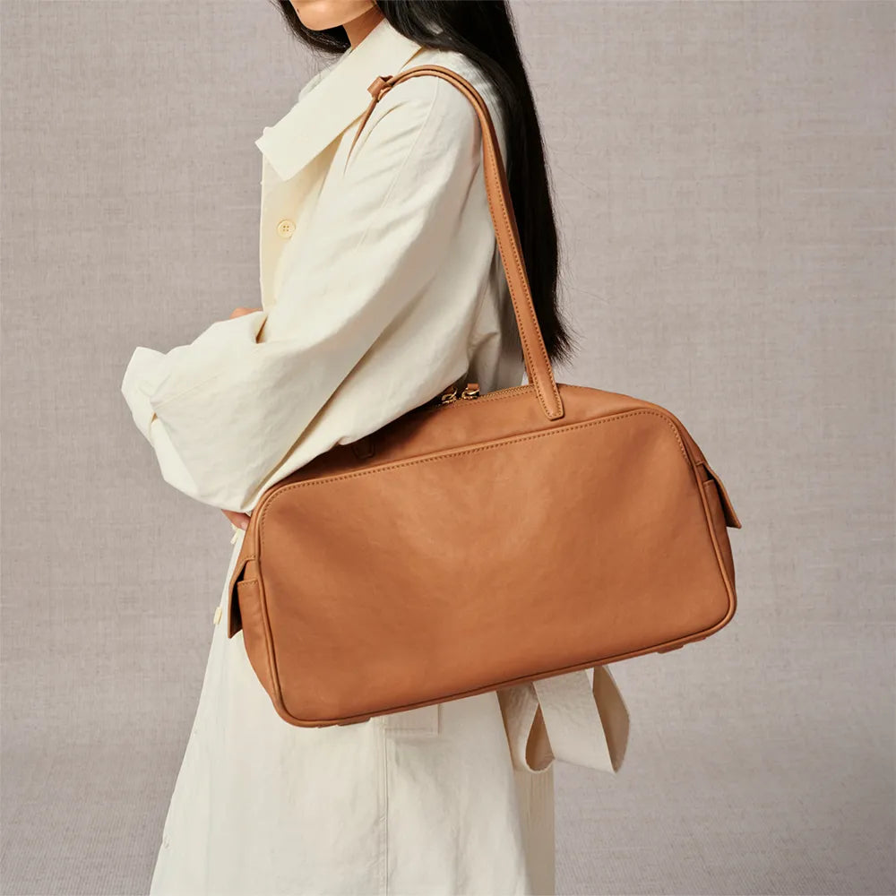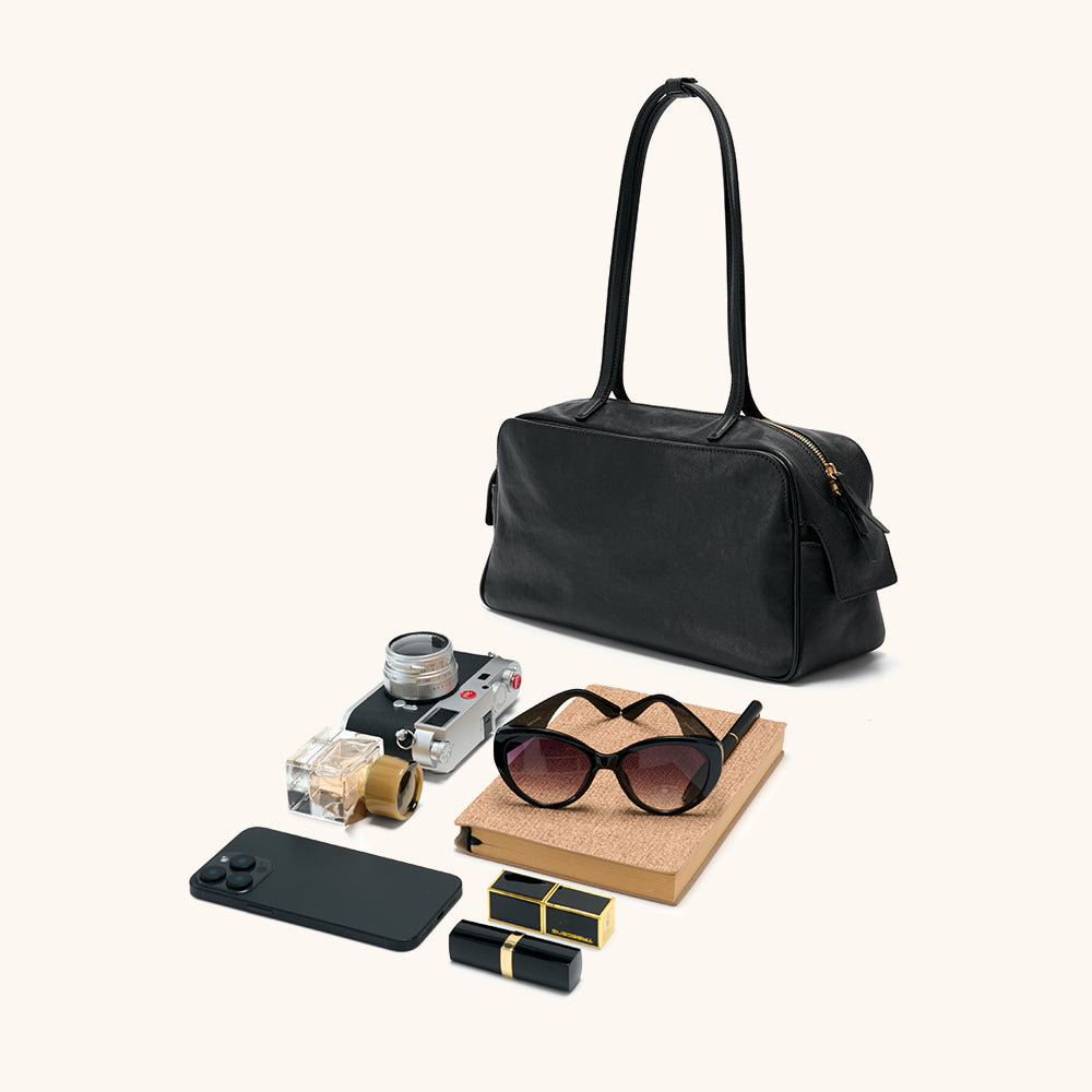 Inspired by the drum towers and upturned eaves of Dong village architecture, the Medium Relume Bowling Bag gives the classic bowling shape an elegant, architectural twist. Its clean lines and soft curves create a balanced silhouette, perfect for commuting, leisure, or everyday use.