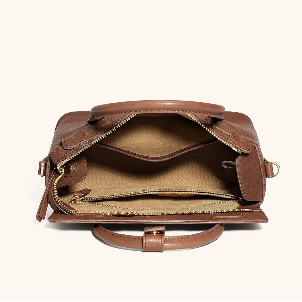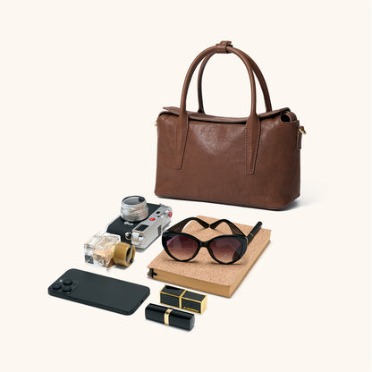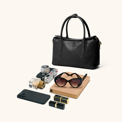 The roof-like magnetic closure layered over a zipper offers double protection, keeping your belongings secure. The bag includes a detachable, adjustable shoulder strap for hand, shoulder, or crossbody wear, while dual top handles with a connector ensure a comfortable and steady grip.
