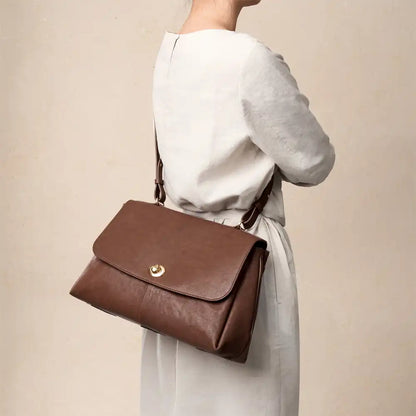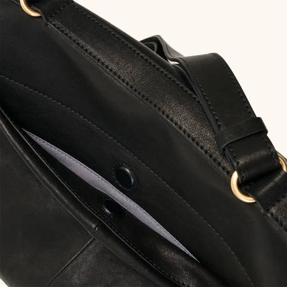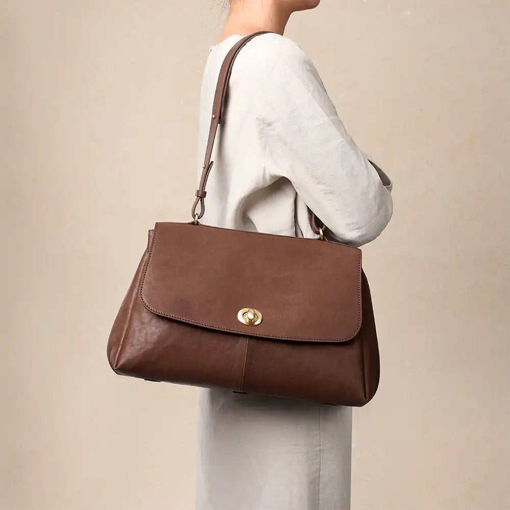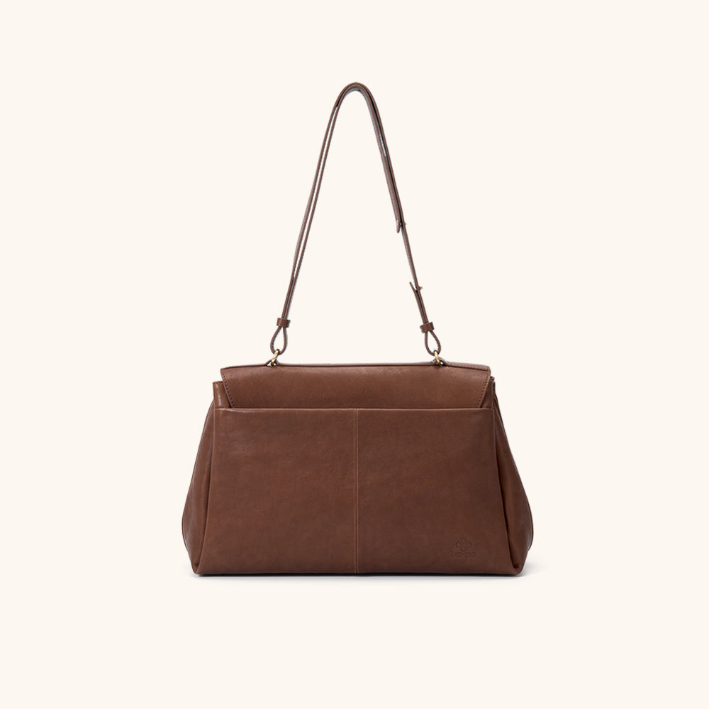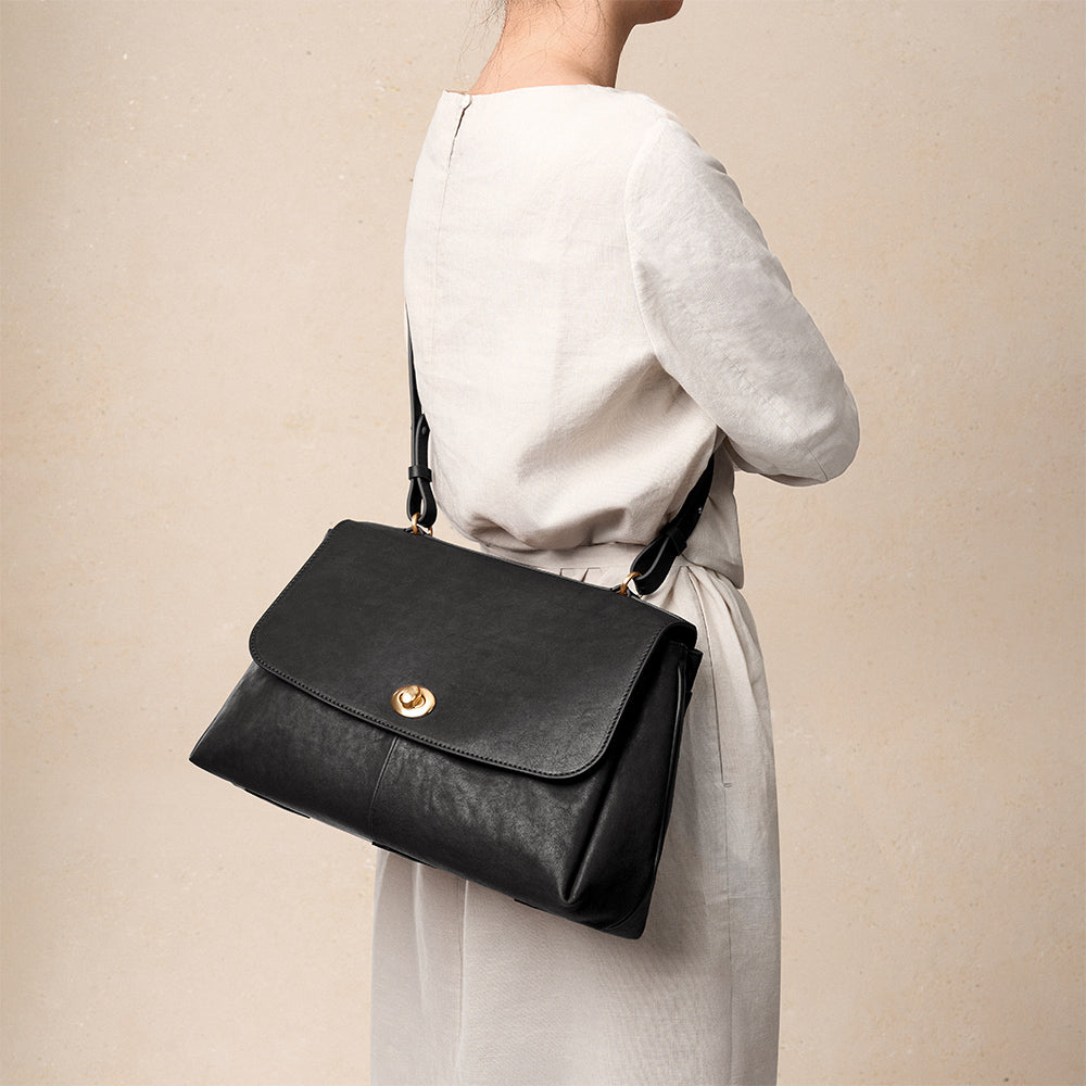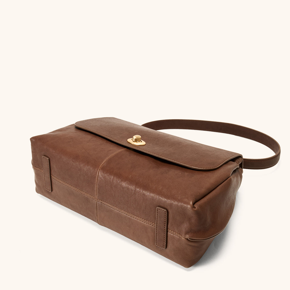 Made from premium top-grain leather, vegetable-tanned with mountain plants and herbs, the surface develops a gentle sheen and smooth touch over time. Gold-plated hardware adds a touch of understated luxury.