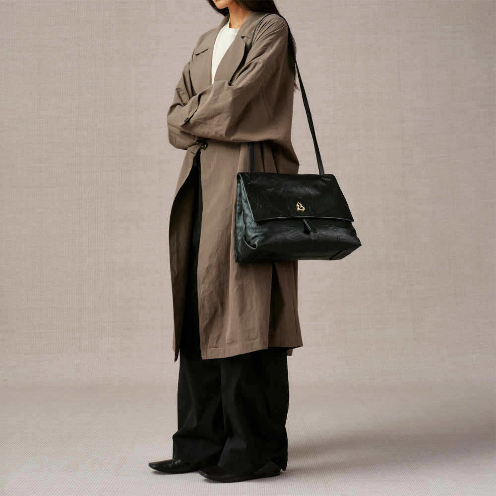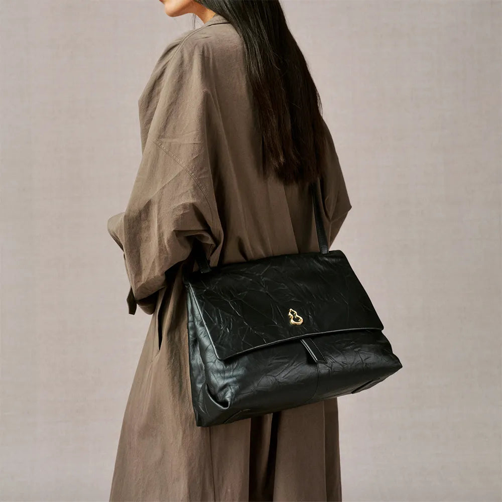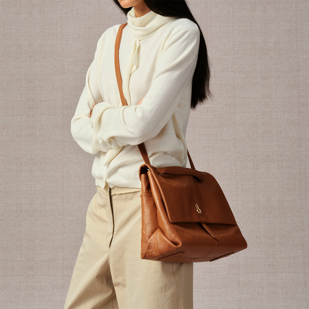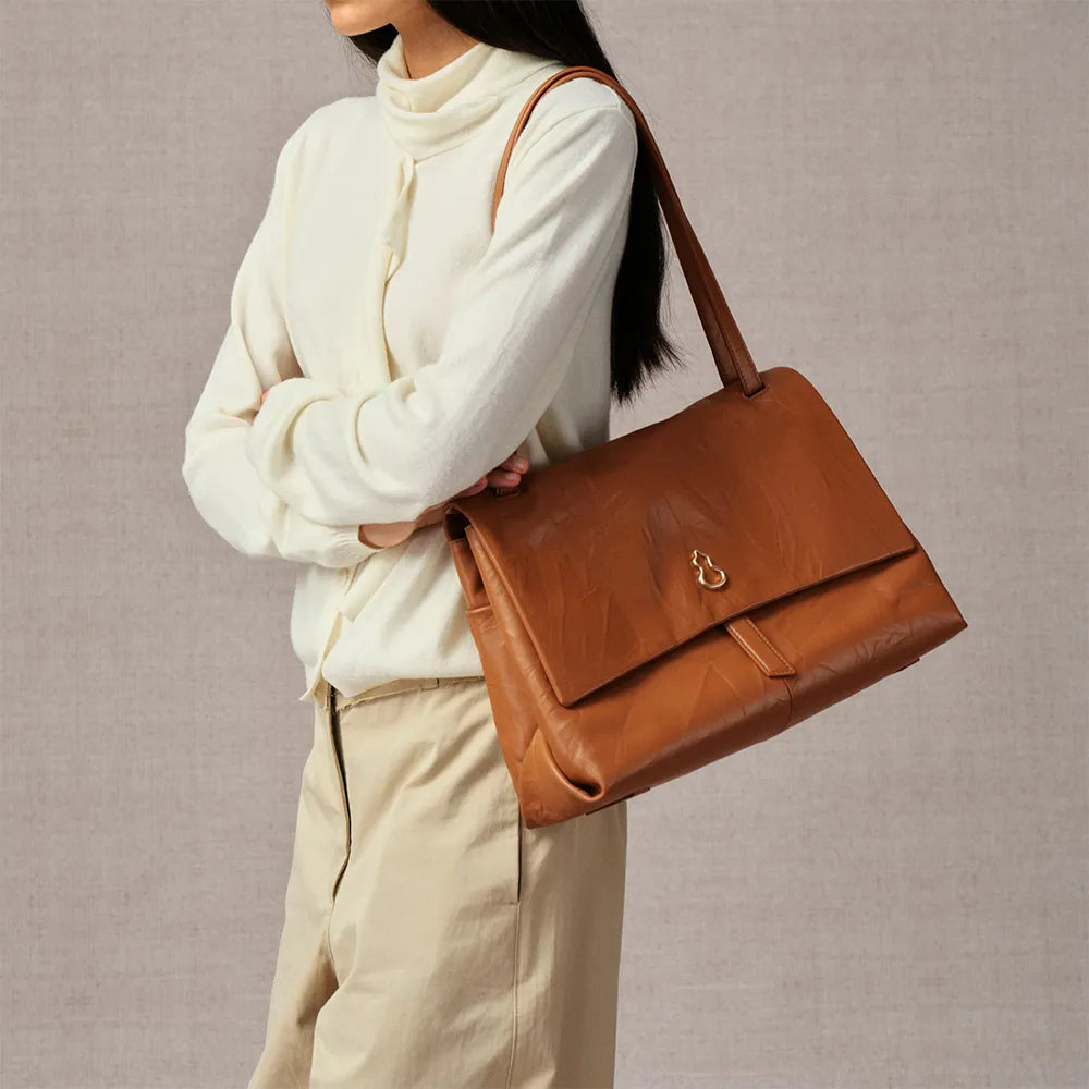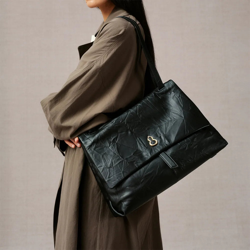 The Swale Messenger Bag combines clean, elegant lines with a soft, supple body, offering a comfortable, soothing feel—perfect for business casual or everyday use. Its design is inspired by the upturned eaves of Dong village drum towers, with a flap shaped like a roof edge.