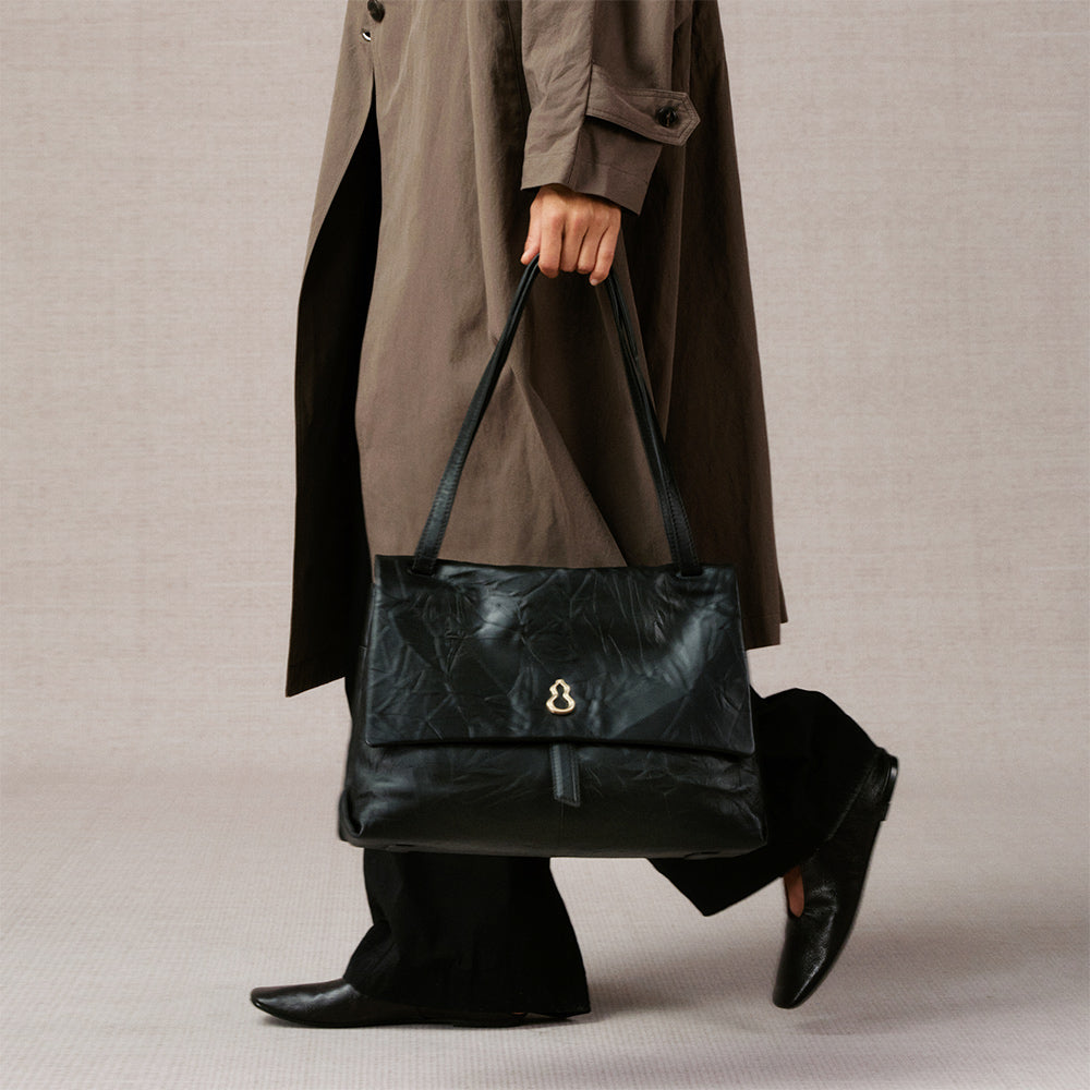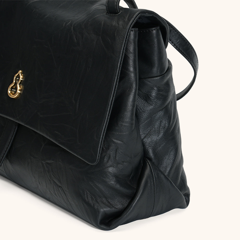 The hardware is inspired by the lucky “hulu” motif, gold-plated with a special textured finish, giving it a subtle, refined look that remains flawless even with minor everyday wear.